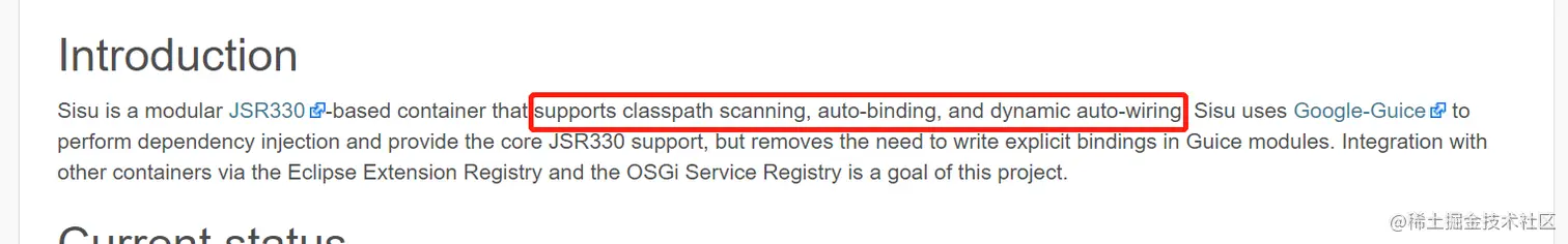 就是比Guice多了些看起来还很不错的、Spring早已有了的特性吧。回头我们肯定要再介绍sisu的。