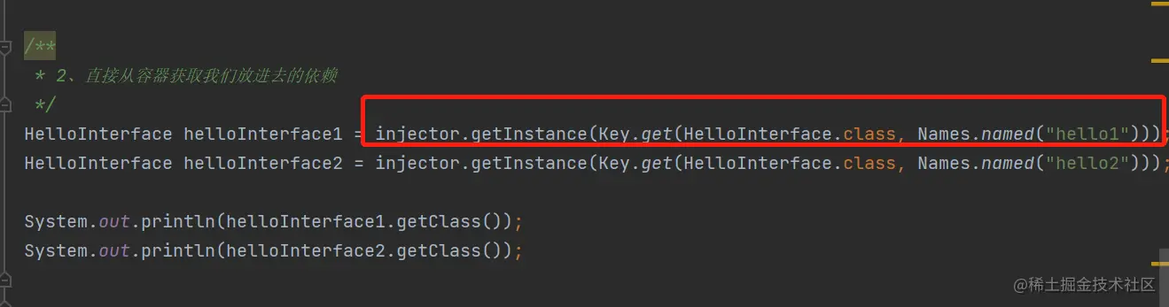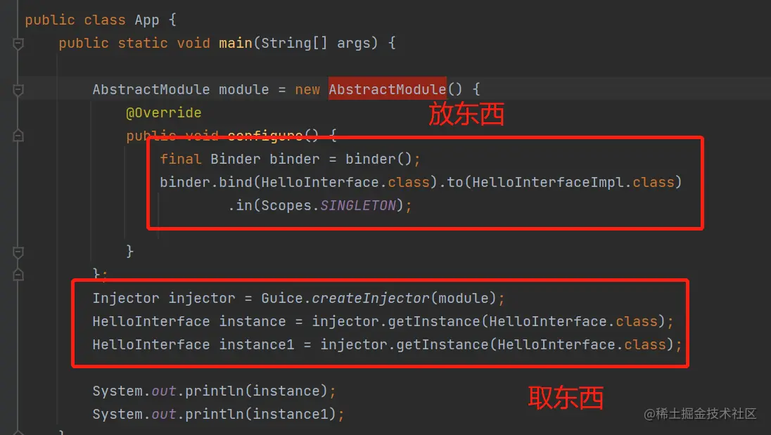 而Guice呢,我这边会重点讲解:怎么存。至于取,可能还分成两种,依赖注入和直接从容器中取。但是依赖注入的底层实现,也是:发现我依赖的某个东西没有,就去容器里取。