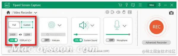选择录制区域大小后,您需要根据需要决定是否启用网络摄像头、系统声音和麦克风设置。然后您可以单击REC并开始捕获。
