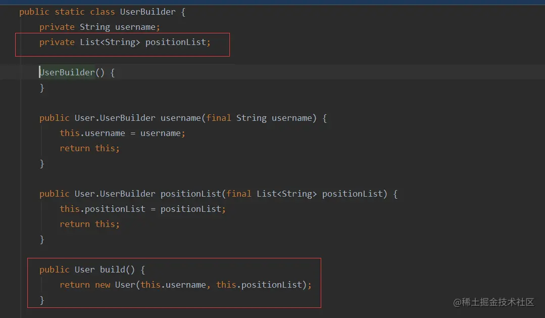 真相就在lombok用@builder生成的class文件中,我们看下使用@builder,生成的class文件反编译后长啥样