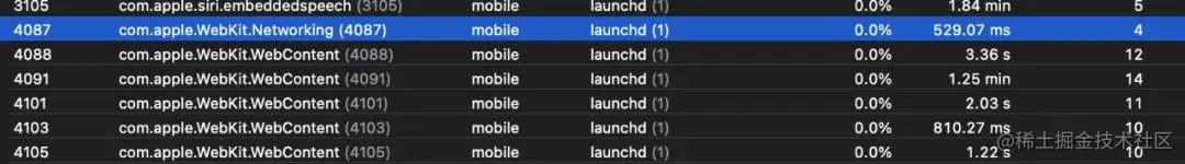 - UI Process:即 App 进程,WKWebView(WebKit) 中部分模块运行在此进程,会负责启动其它进程。