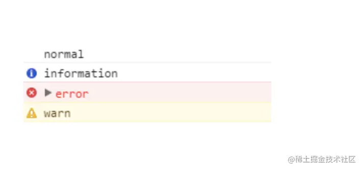 最基本也是最常用的用法了,分别表示输出普通信息、错误信息、警示信息和提示性信息,且每个标识信息都有特定的图标和颜色标识。