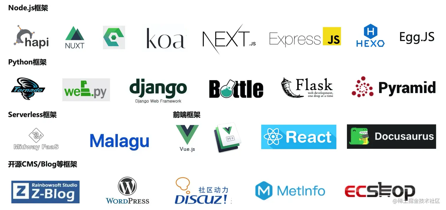 Serverless Devs 2.0 提供了更加完善的传统框架迁移方案和策略,提供超过 20 种 Web 框架,让开发者可以近乎 0 成本完成传统框架的一键迁移。