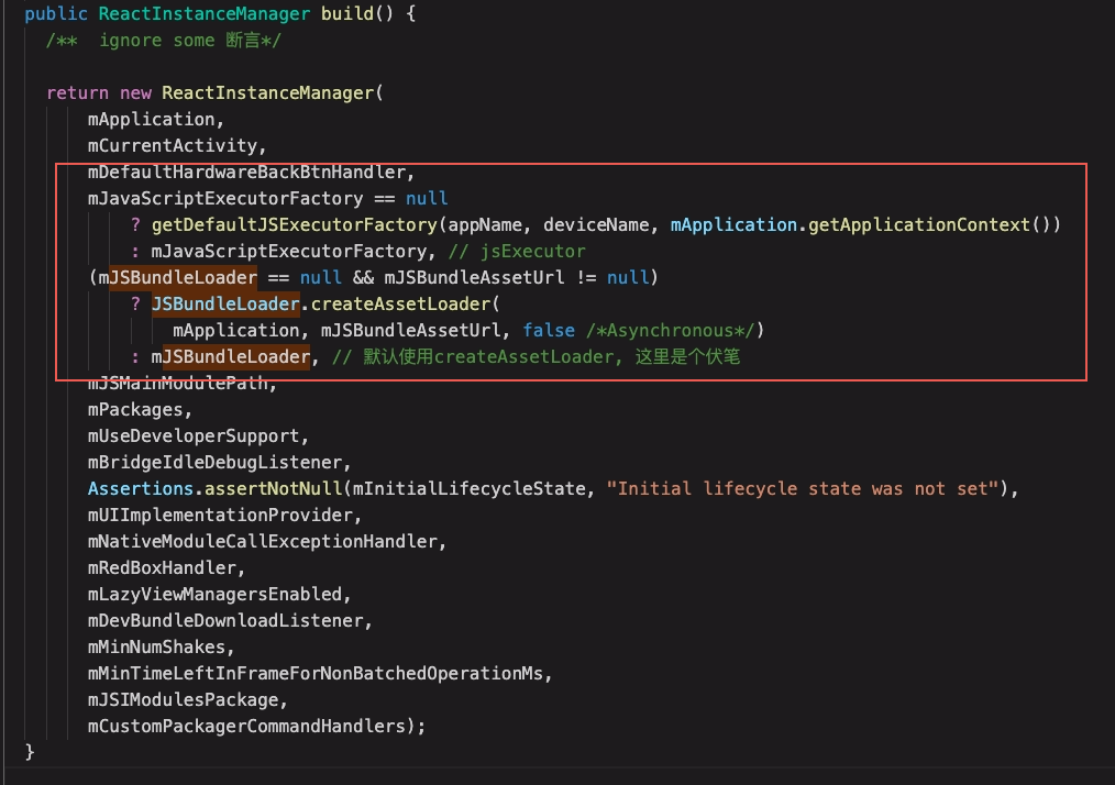 赋值了默认的js excutor以及jsbundleLoader默认使用createAssetLoader,这里是个小伏笔,后面会用到