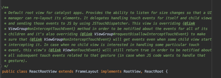 ReactRootView这里有一个注释总结了ReactRootView的作用