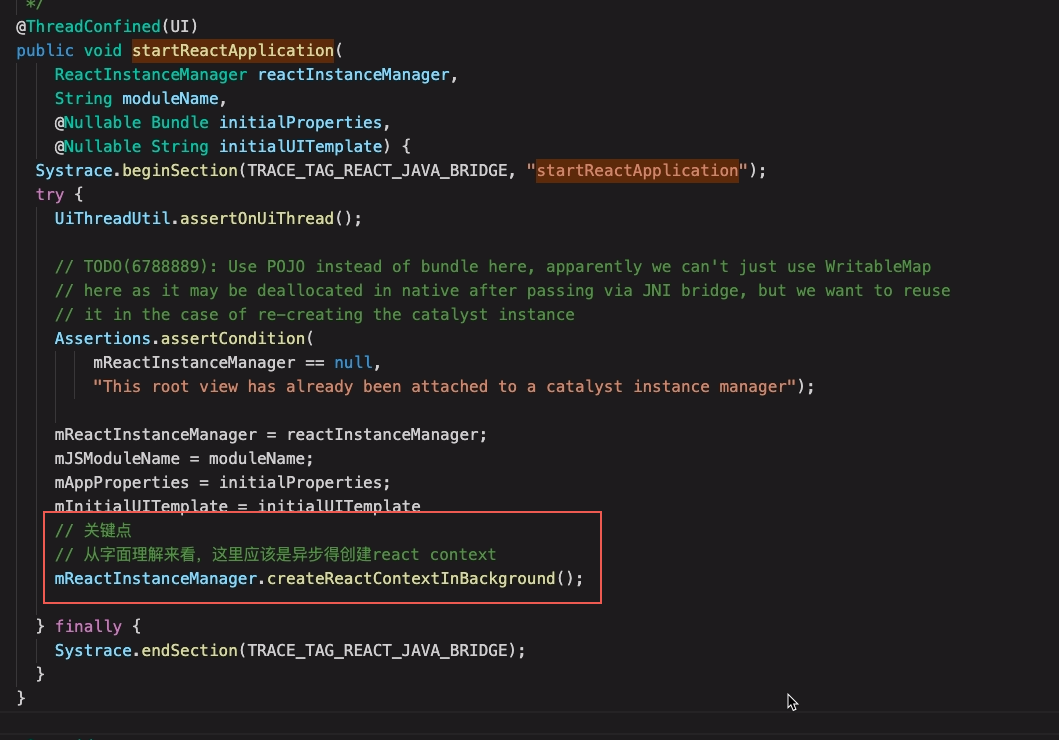 这里在确保当前运行在ui线程后,调用了reactInstanceManager