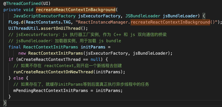这里暂不先去看ReactInstanceManage里面做了什么。因为这里还没有方法的调用
