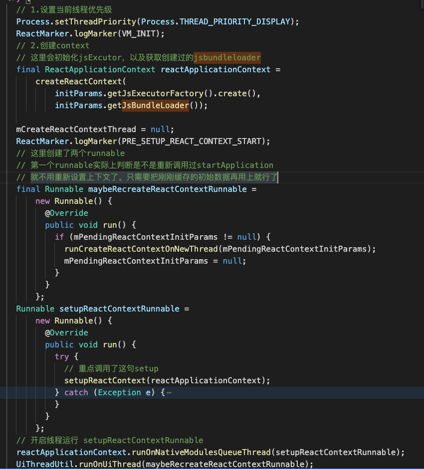 我们继续看java层的流程,前面提到在创建完RN上下文后会进行setup,接下来看看setup主要做了什么