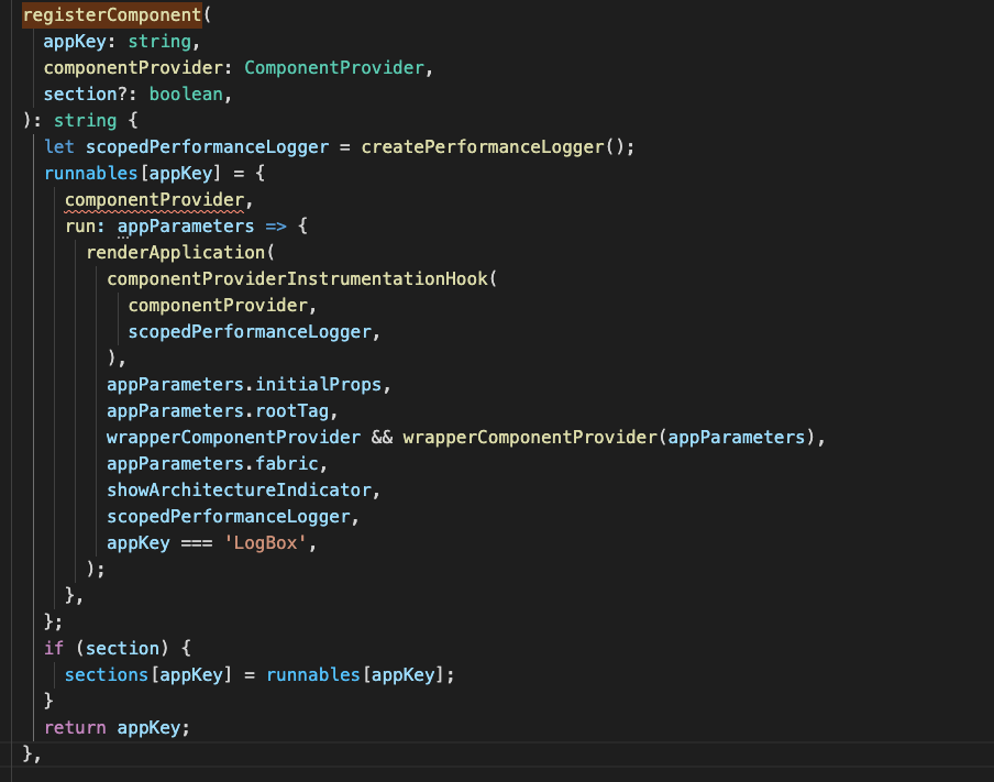 registerComponent实际上只是把应用的rederApplication方法的调用以appKey为索引存储在了runnables中, 看起来还是需要有一个地方去调用renderApplication