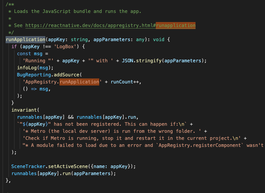 可喜的发现,在这里会找到appRegistry并调用其的runApplication方法