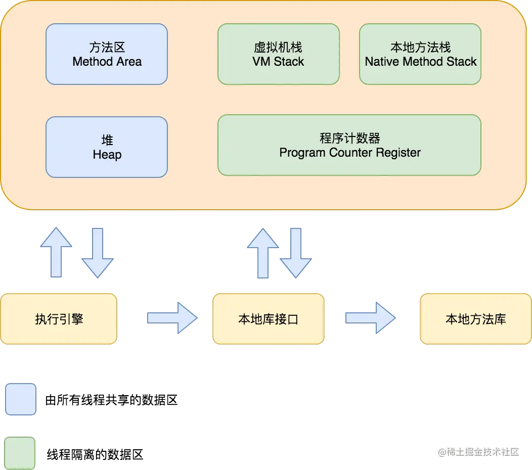 Java 运行时数据区共分为以下几个部分:程序计数器、Java 虚拟机栈、本地方法栈、Java堆和方法区。其中程序计数器、Java 虚拟机栈、本地方法栈是线程私有的,也就是每个线程都会有这几部分。Java 堆和方法区是线程共享的,下面分别看一下这些区域的作用。