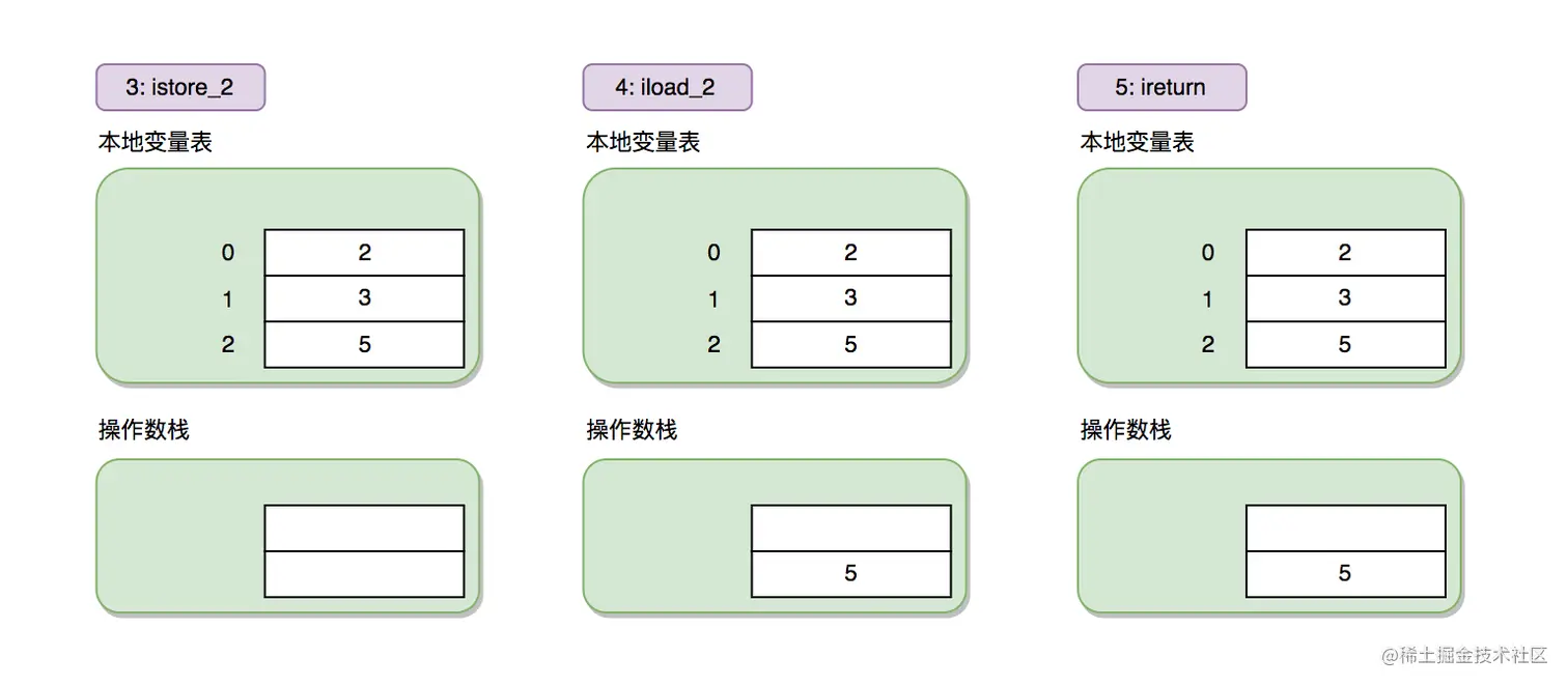 执行istore_2后,5出栈放入本地变量表