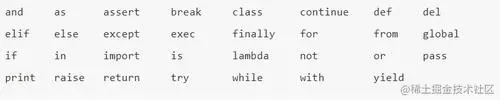 一些具有特殊功能的标识符,这就是所谓的关键字,是Python已经使用的了,所以不允许开放者自己定义和关键字相同的名字的标识符;(其中标识符由字母、下划线和数字组成,且数字不能开头)