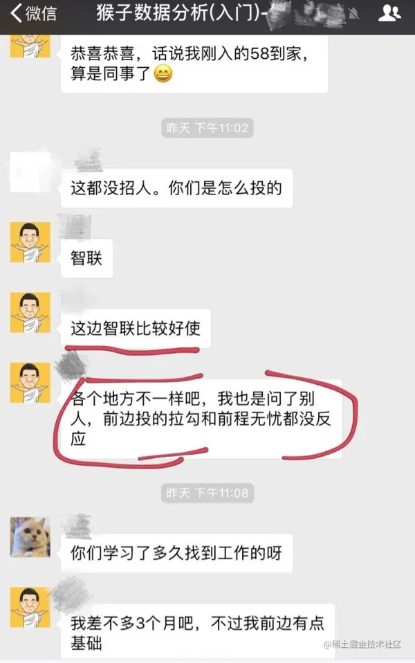 这给我们的决策依据是,以后你找工作,就要根据自己的城市选择合适的招聘APP来投简历。例如下面这位社群会员分享的经验: