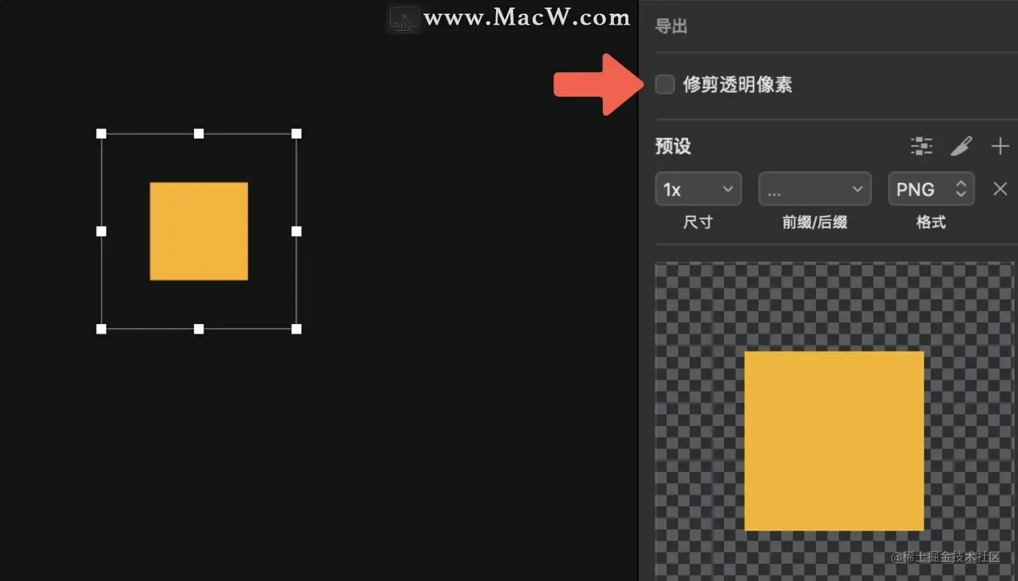 - 取消勾选“导出 > 修剪透明像素”选项。