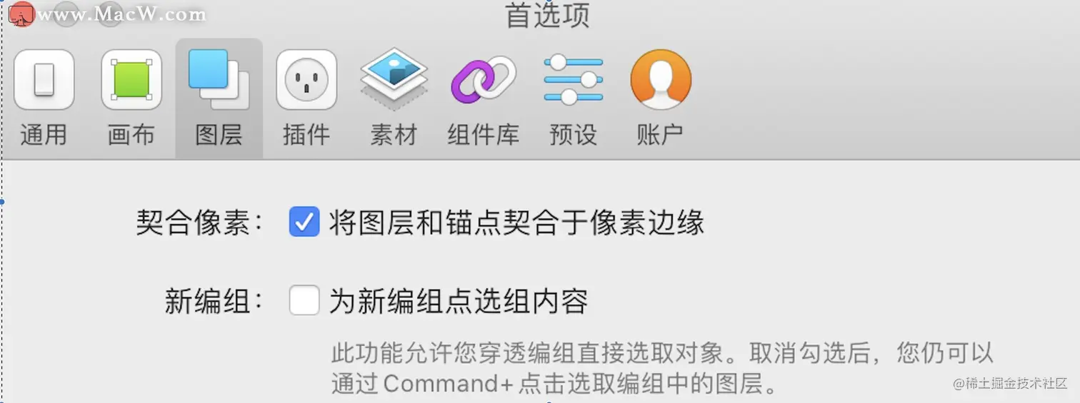 在Sketch--首选项--图层中,将契合像素勾选上,再次上传就可以正常显示切图尺寸了哦。