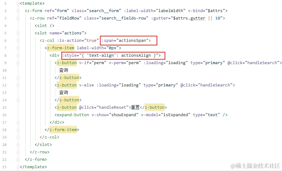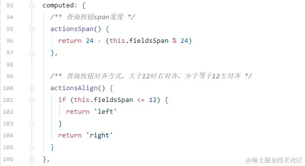 在组件中通过了computed计算属性去控制查询按钮的宽度和对齐方式