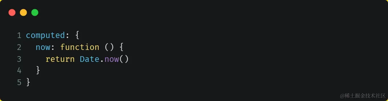 这也同样意味着下面的计算属性将不再更新,因为 Date.now() 不是响应式依赖: