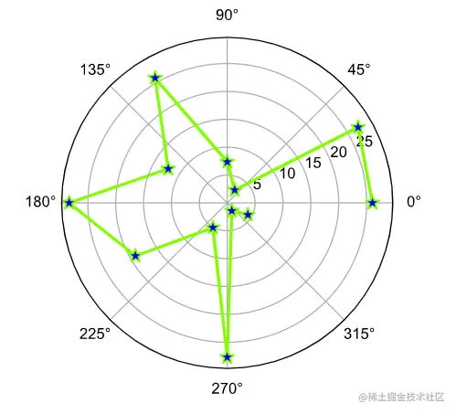 极线图是在极坐标系上绘出的一种图。在极坐标系中,要确定一个点,需要指明这个点距原点的角度和半径。将这些点连在一起,就构成了极线图。