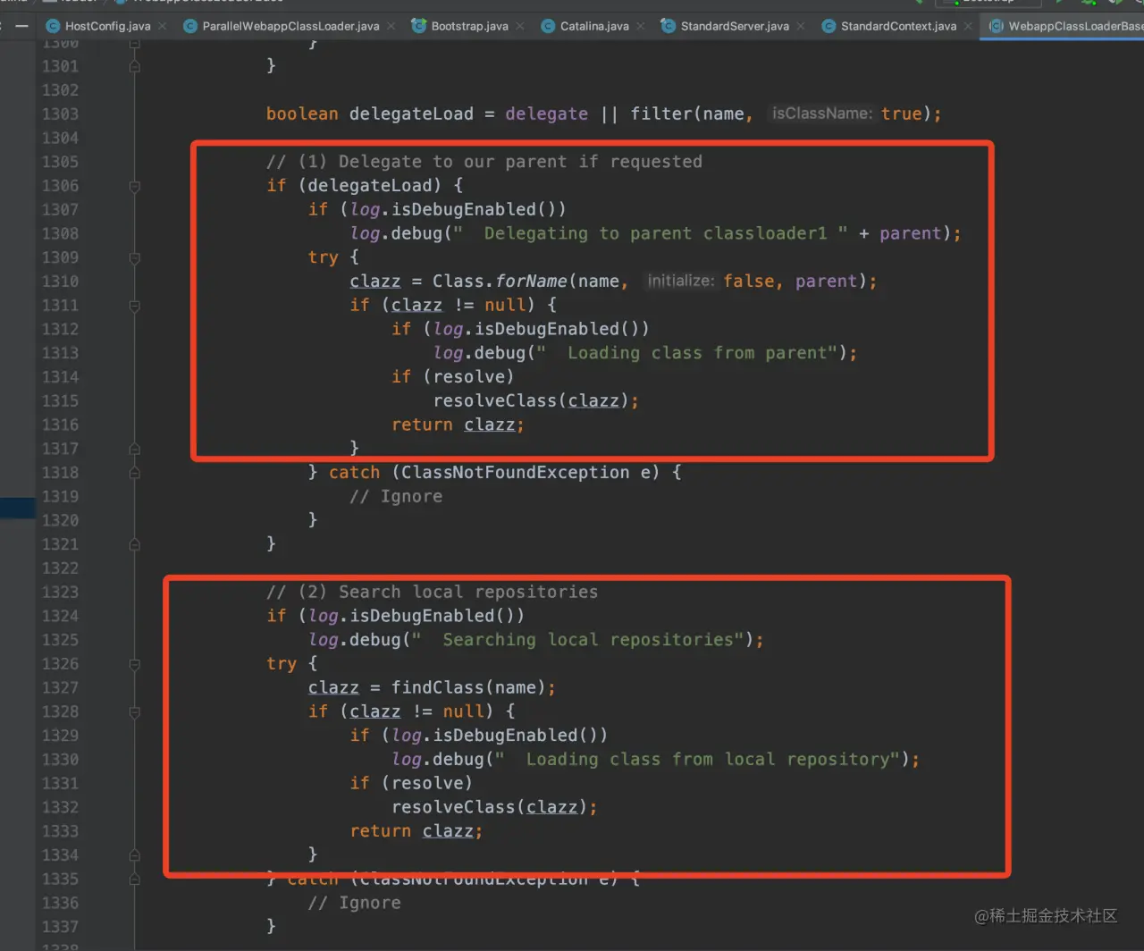 1. 在默认参数下,虽然tomcat源码中调用了Thread.currentThread().setContextClassLoader(catalinaLoader); 但是tomcat本身的实际类加载器是Application ClassLoader(因为默认参数下,CatalinaClassLoader没有加载额外的资源,所以暂时不考虑);