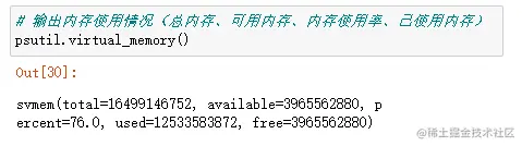 比如上面输出的total=16499146752即为总内存16G,已使用内存/总内存= 76.0%(内存使用率)。