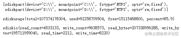 可以通过psutil获取磁盘分区、磁盘使用率和磁盘IO信息。
