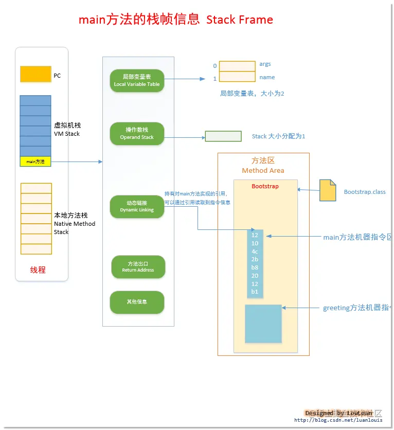 (1)程序在JVM主要执行的过程是执行引擎与运行时数据区不断交互的过程,可理解为上面“方法区中的动图”