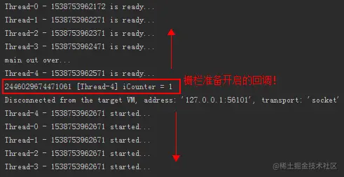 此处设置了一道门,以保证所有线程可以同时生效。但是,此处的同时启动,也只是语言层面的东西,也并非绝对的同时并发。具体的调用还要依赖于CPU个数,线程数及操作系统的线程调度功能等,不过咱们也无需纠结于这些了,重点在于理解原理!