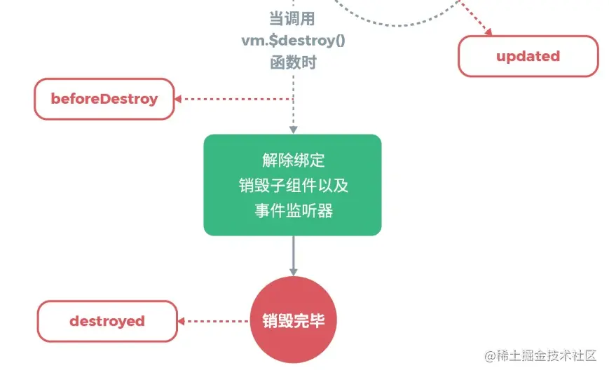 🟢当调用vm.$destory()函数时进行销毁阶段