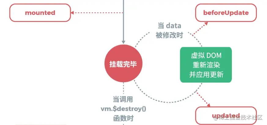 🔴注意:updated 不会保证所有的子组件也都被重新渲染完毕。如果你希望等到整个视图都渲染完毕,可以在 updated 里使用 vm.$nextTick: