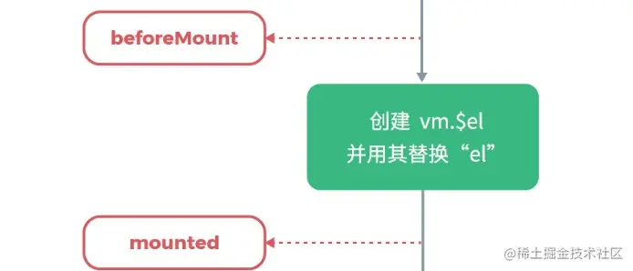 🌼官方详细:实例被挂载后调用,这时 el 被新创建的 vm.$el 替换了。如果根实例挂载到了一个文档内的元素上,当 mounted 被调用时 vm.$el 也在文档内。