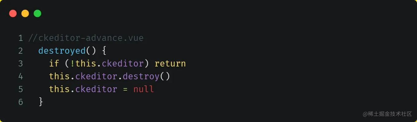 当执行beforeDestory的时候,组件即将被销毁,但是还没有真正开始销毁,只是销毁前的操作,组件还可以正常可用,还可以用this来获取实例。在卸载前检查组件是否已被卸载,如果已经被卸载直接return出去。