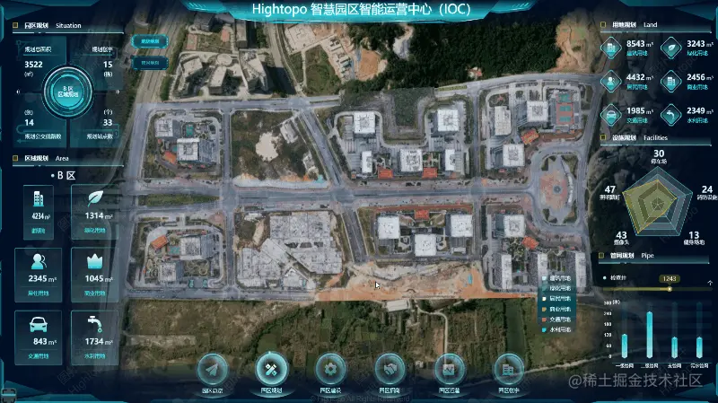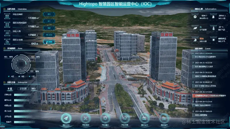 HT 采用自主研发的二三维可视化引擎、GIS、BIM 以及视频融合等技术,接入倾斜摄影、GIS 空间信息数据、智能物联网 IoT 数据以及大数据系统平台的等数据信息,结合轻量化建模方案实现甚至手机端都可随时随地查看 3D 可视化效果,提升园区管理和运行效率,为园区的智能化建设、数字化转型和一体化管理提供解决方案。