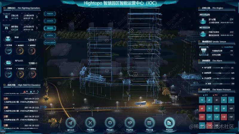 随着信息技术的发展,建筑管理也有了更多的方式,楼宇电梯系统、楼宇照明系统、消防系统、安防系统、环境与空调系统的部署可以充分实现楼宇管理智能化、数字化。智慧楼宇可视化整合对接各类业务系统的基础上,通过 HT 智慧园区可视化平台实现对楼宇各系统的综合统一管理,减轻了楼宇管理成本负担,提高经营管理效率。对于不同的楼宇情况,图扑软件也有多种针对性的解决方案。