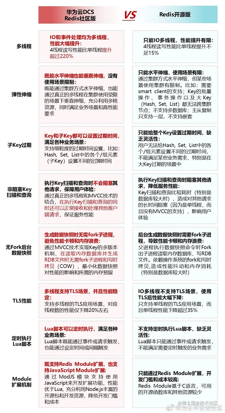 下表是DCS 社区版Redis 6.0与开源版本的详细对比: