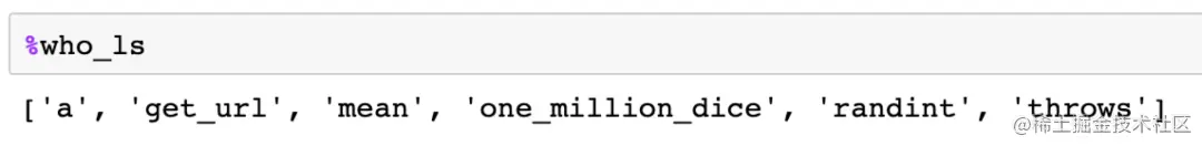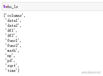 其实我们可以使用魔法命令——%who_ls查看已经定义了哪些变量?