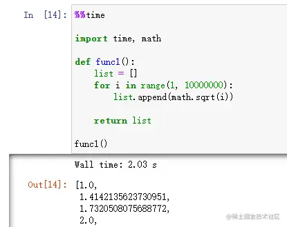 有时候我们需要计算一些函数或过程运行时间,以此来衡量代码的效率,在其他IDE可能需要写个函数或者使用第三方模块来完成,而在Notebook中,提供了便捷的魔法函数