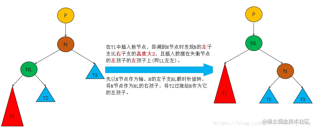 节点N左子支比右子支高度大2,且插入的节点位于N的左孩子节点NL的左子支上