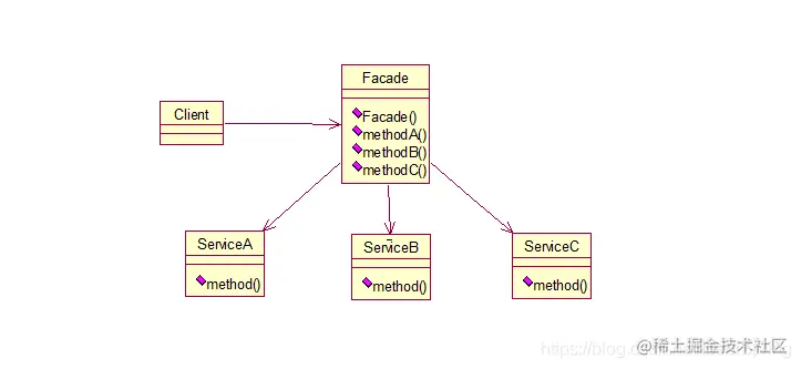 为子系统中的一组接口提供一个一致的界面,Facade模式定义了一个高层接口,这个接口使得这一子系统更加容易使用。 我们都知道类与类之间的耦合越低,那么可复用性就越好,如果两个类不必彼此通信,那么就不要让这两个类发生直接的相互关系,如果需要调用里面的方法,可以通过第三者来转发调用。外观模式非常好的诠释了这段话。外观模式提供了一个统一的接口,用来访问子系统中的一群接口。它让一个应用程序中子系统间的相互依赖关系减少到了最少,它给子系统提供了一个简单、单一的屏障,客户通过这个屏障来与子系统进行通信。通过使用外观模式,使得客户对子系统的引用变得简单了,实现了客户与子系统之间的松耦合。但是它违背了“开闭原则”,因为增加新的子系统可能需要修改外观类或客户端的源代码。