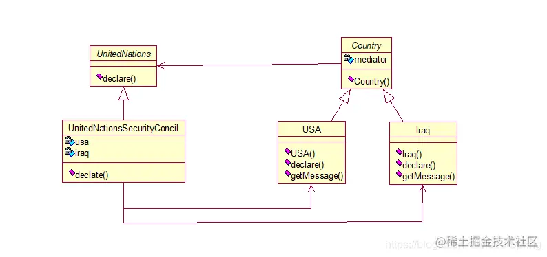2.ConcreteMediator 具体中介者通过协调各同事对象实现协作行为。 了解并维护它的各个同事。