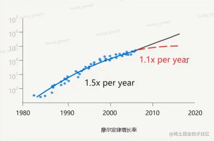 摩尔定律是随着技术的发展,逐渐开发机器的算力。使得计算机的算力保持一定速率的快速增加。但是近些年来,在当前的技术背景下,计算机的处理能力遇到了发展瓶颈,计算机的处理能力不可能再一直保持快速增加,而对我们就意味着性价比降低了。