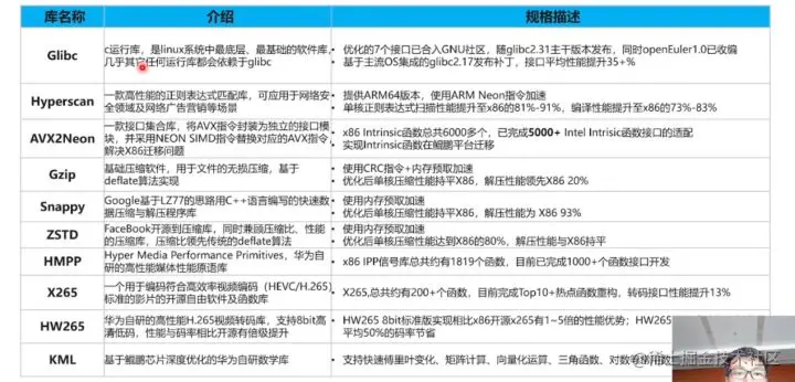 鲲鹏加速库:对软件基础库做深度性能优化,构建常用软件库在鲲鹏平台上的性能竞争力,硬件加速+软加速库,现已完成18个加速库,是基于鲲鹏平台指令优化和软硬件结合的加速技术。