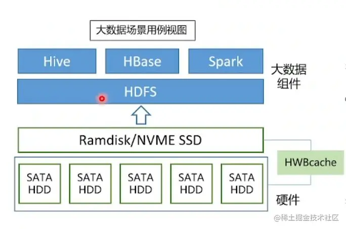 大数据场景HDFS访问的底层磁盘设备适配为Bcache设备,缓存盘可选择Ramdisk与NVME SSD两种介质形式。