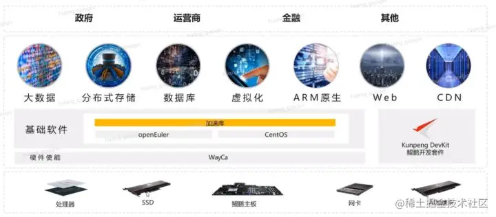 加速库实际上更偏向底层,介于硬件资源和解决方案之间。隶属于基础软件这一层,对上应用于各种解决方案,比如大数据、分布式存储、数据库等等这些解决方案。从而支撑这些解决方案于政府、运营商、金融等其他领域。对下可以适配主流的操作系统比如openEuler、CentOS等等,通过充分发挥硬件的能力,或者内嵌于操作系统,以及单独作为一个函数库去支撑解决方案,提升解决方案的性能,最终提升客户的性价比。也就是说不需要去一直增加这个硬件的配置,一直加购硬件资源提升计算机的性能。