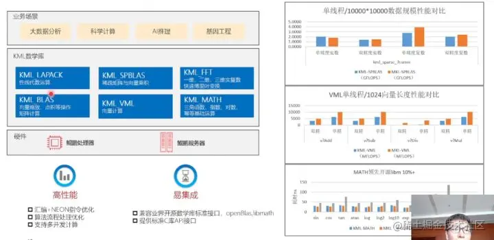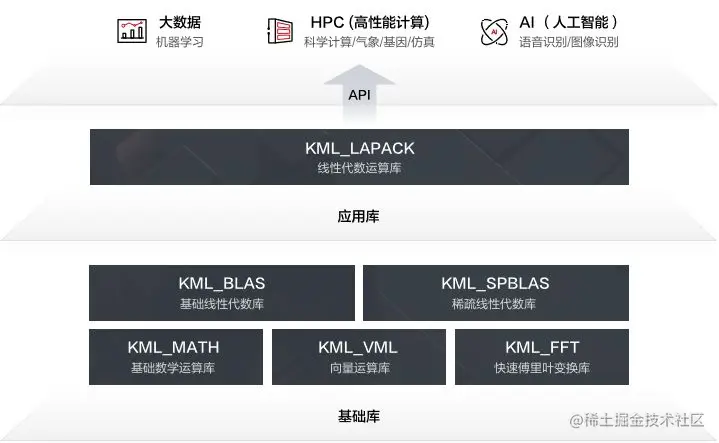 KML 是基于华为鲲鹏处理器的高性能数学计算加速库,提供了基于鲲鹏平台优化的数学函数,由基础线性代数库( KML_BLAS )、稀疏线性代数库( KML_SPBLAS )、向量运算库( KML_VML )、基础数学库( KML_MATH )、快速傅里叶变换库( KML_FFT )等五个子库组成,可根据业务需求集成使用。