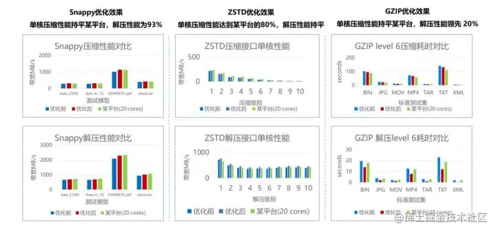 保持snappy/ZSTD/gzip已有接口、 功能规格不变的情况,提升压缩和解压速度,不会影响各个level的压缩及解压结果。