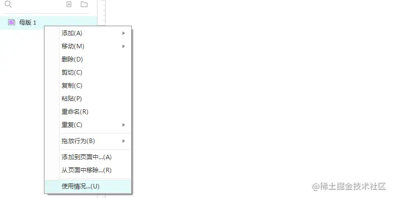 为了便于查看和修改母版,AXURE提供了母版的使用情况记录。在母版窗格中点击右键,然后选择使用情况。