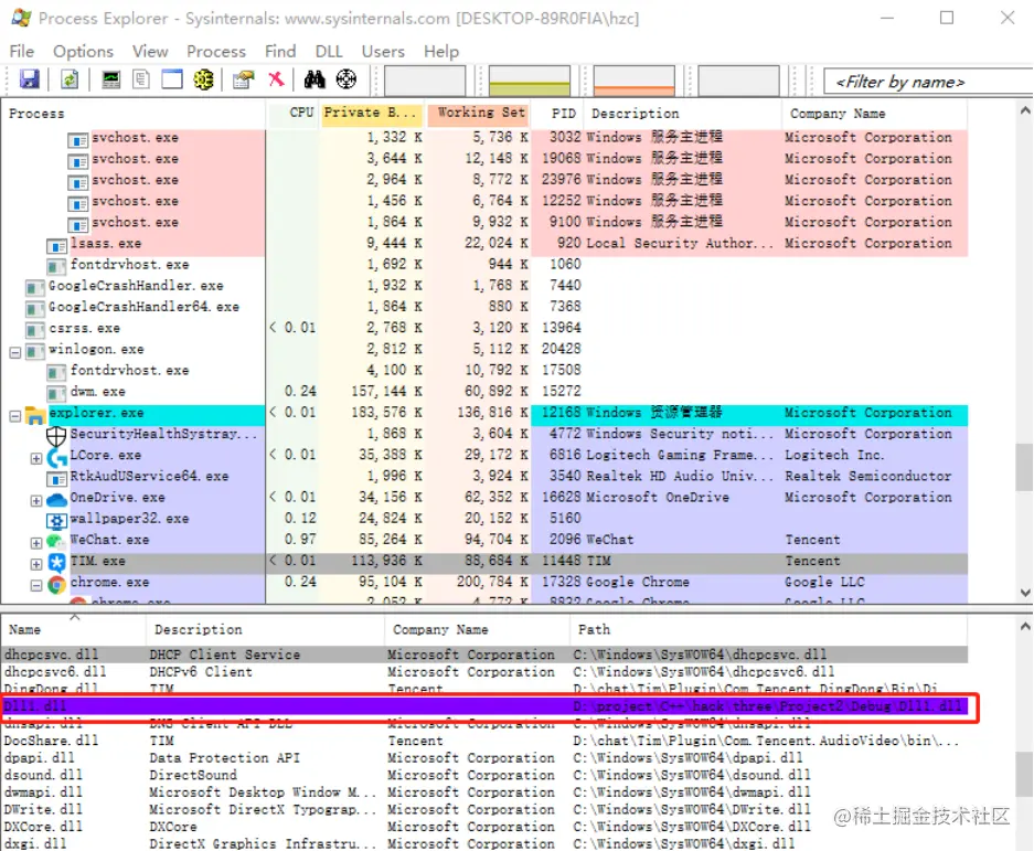 使用Process Explorer查看dll: