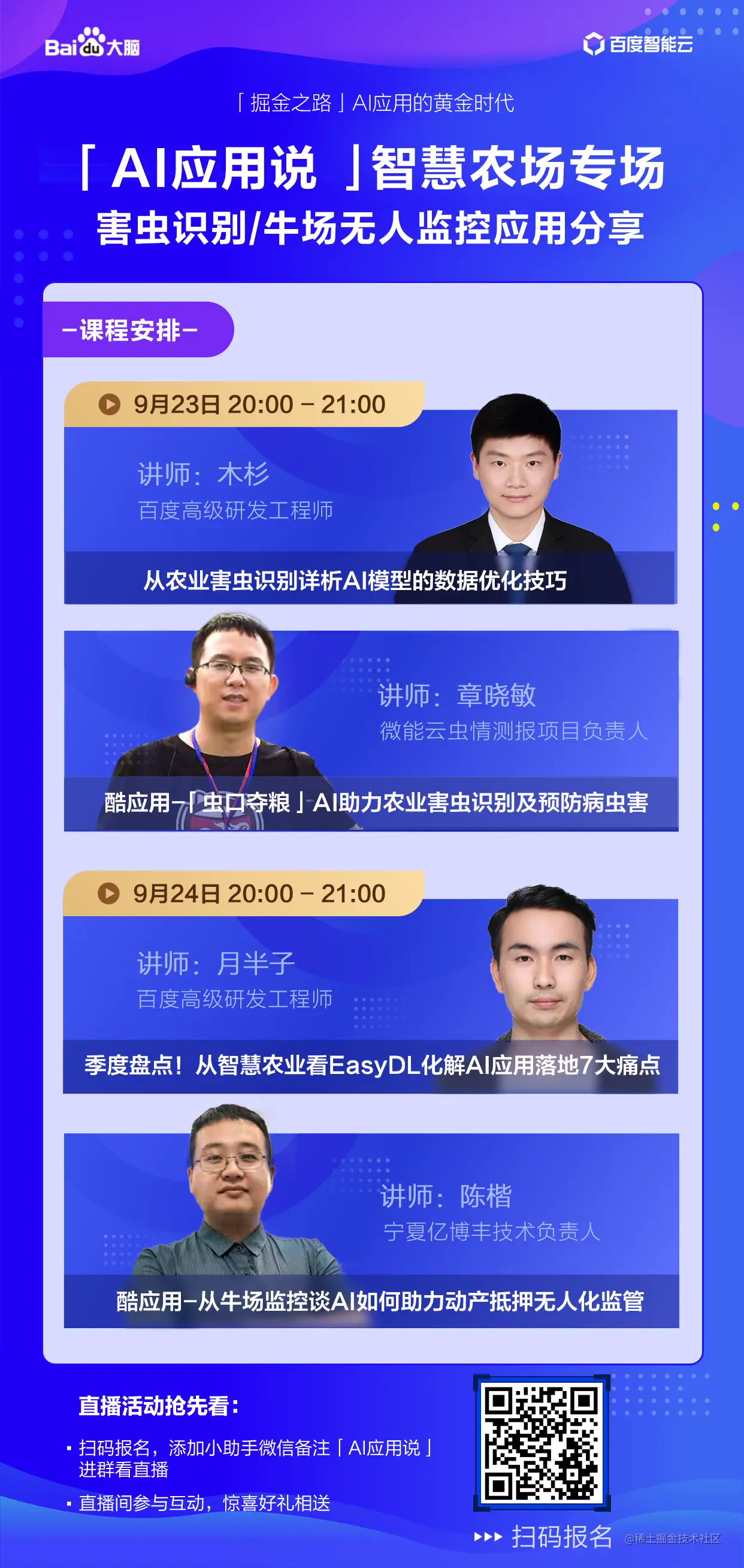 更多案例详情,都在9月23日、24日的AI应用说-智慧农场公开课的直播现场!