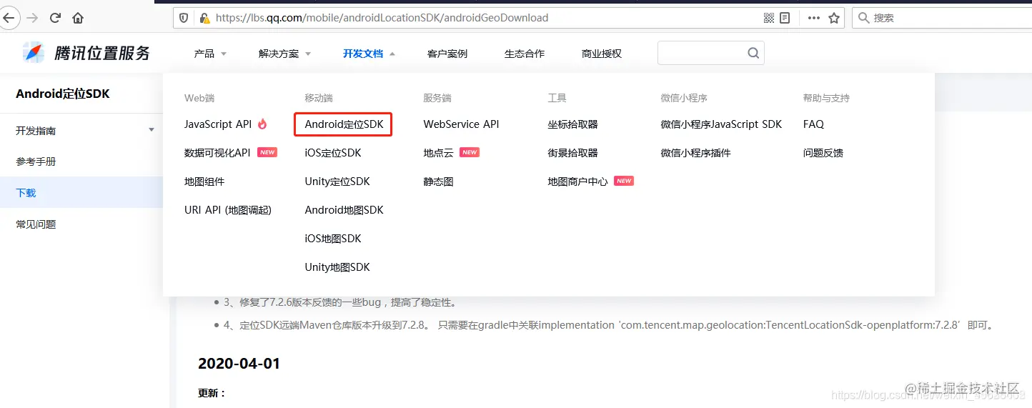 我们打开Android定位SDK开发文档,下载最新的SDK